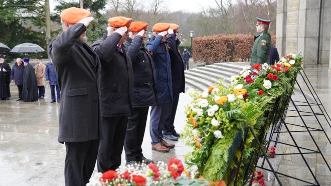 Накануне 23 февраля представители Общероссийской организации «ОФИЦЕРЫ РОССИИ» в Германии и немецкие офицеры возложили венки у мемориала погибшим советским войнам в берлинском парке Тиргартен. На данном мемориале покоятся более 3 тыс. солдат и офицеров Красной армии, отдавших свою жизнь в последние дни войны.