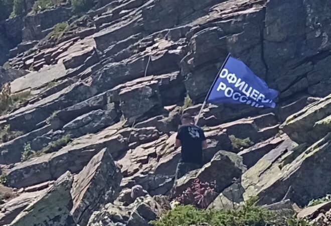 В преддверии Дня ветеранов боевых действий активисты регионального отделения «ОФИЦЕРОВ РОССИИ» в Иркутской области в составе сводного отряда совершили восхождение на пик Черского – высшую точку (2090 м) Комаринского хребта в Хамар-Дабане, расположенную к югу от Байкала.
