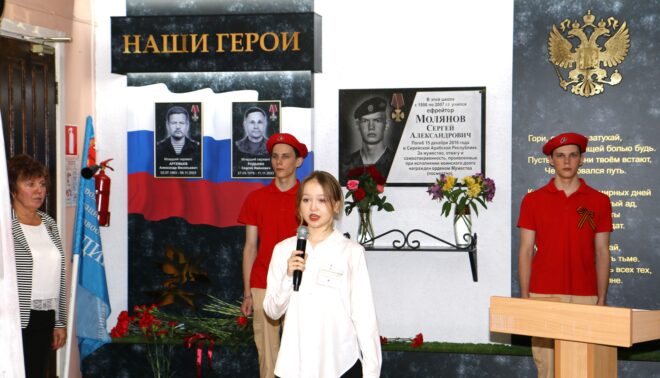 В средней школе №58 г. Нижнего Новгорода состоялось торжественное открытие «Галереи памяти», посвященной выпускникам, кавалерам орденов Мужества, погибшим на полях сражений в зоне СВО и Сирийской Арабской Республике, – Сергею Ивановичу Родькину, Александру Васильевичу Артемьеву и Сергею Александровичу Молянову.