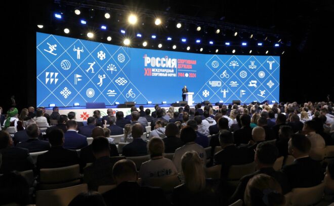 На пленарном заседании Международного спортивного форума выступил президент РФ Владимир Путин, который озвучил перспективы мирового и отечественного спорта, а также основные тенденции национальной политики в области физической культуры и спорта.