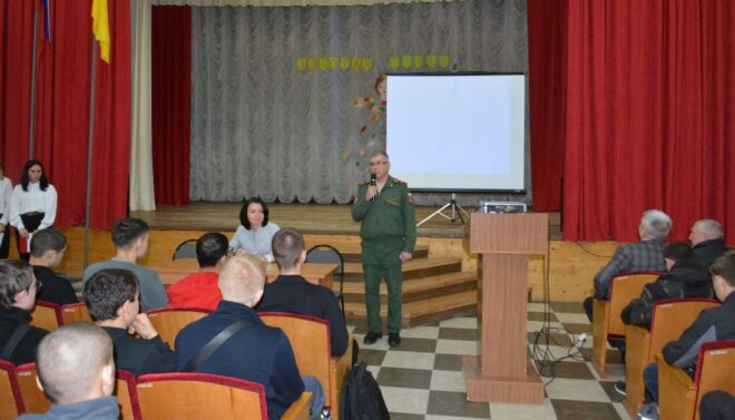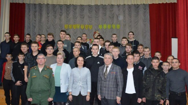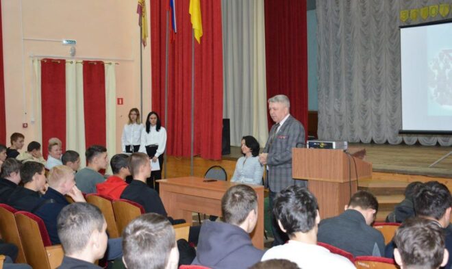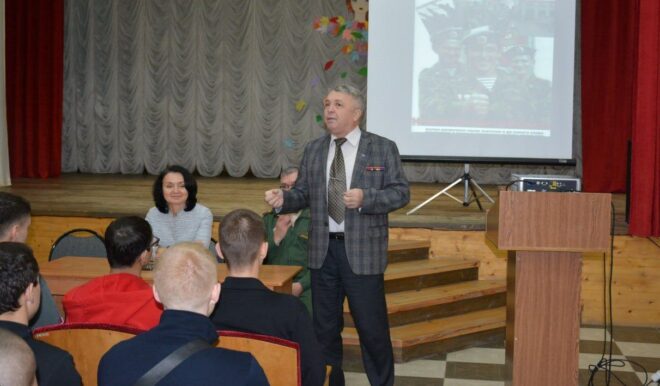 Почетный сотрудник МВД, полковник полиции Станислав Афанасьев выступил перед будущими защитниками Отечества. Он рассказал, что 14 лет из более чем 30 лет выслуги отдал службе в Ракетных войсках стратегического назначения, вспомнил о своих военных буднях, поделился армейскими историями.