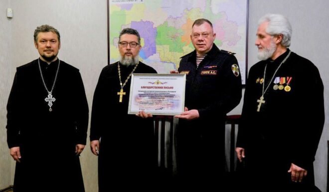 За вклад в военно-патриотическое воспитание защитников Родины священнослужителям были вручены благодарственные письма от начальников управлений.
