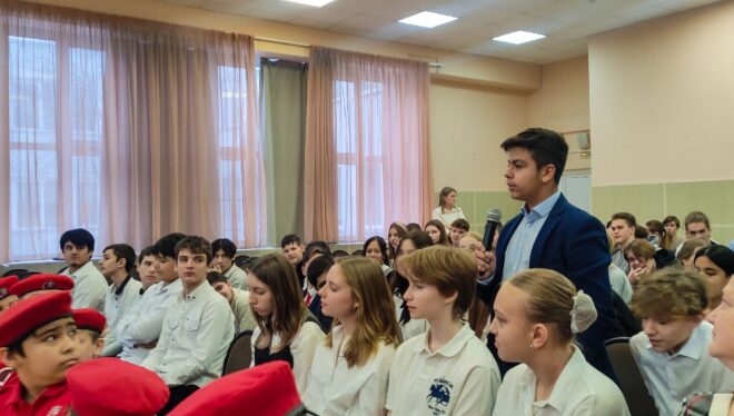 Председатель Совета по патриотическому воспитанию Александр Головашкин провел встречу с учащимися подмосковной школы