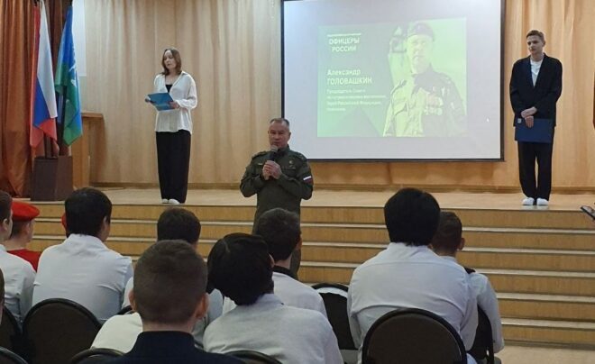 В преддверии Дня Героев Отечества в средней школе д. Ликино Одинцовского района Московской области прошла встреча учащихся с председателем Совета по патриотическому воспитанию «ОФИЦЕРОВ РОССИИ», Героем России Александром Головашкиным.