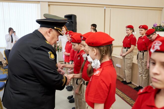 Активисты участвовали в торжественных церемониях посвящения в юнармейцы в учебных заведениях «Перспектива», Сургутской технологической школе, средней школе №1 сельского поселения Барсово Сургутского района.