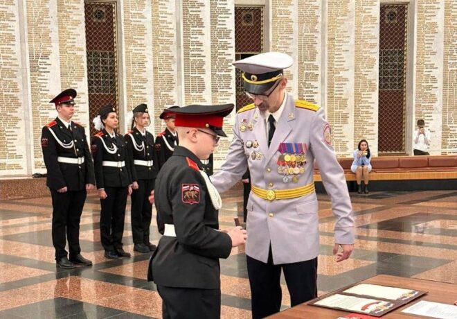 Учащиеся приняли клятву кадета, после чего почетные гости вручили им знаки отличия и удостоверения.