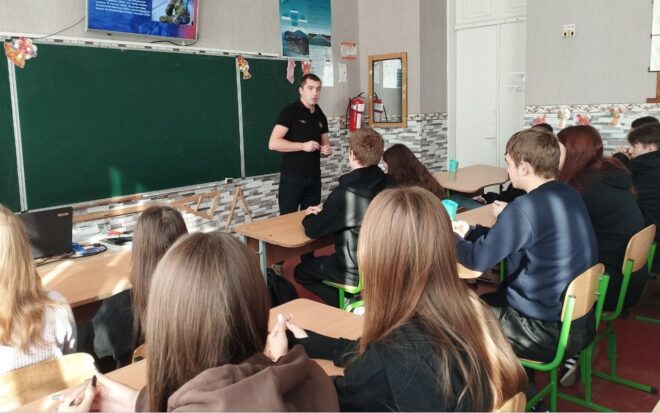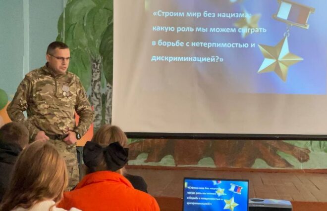 Цикл лекций, посвященных современным событиям, Кирилл Бабушкин провел в школе №11 г. Мелитополя. Ребята постарались ответить на вопрос: как построить мир без нацизма? Дискуссии прошли в рамках совместной программы о сотрудничестве между Министерством образования и науки Запорожской области и региональным отделением «ОФИЦЕРОВ РОССИИ».