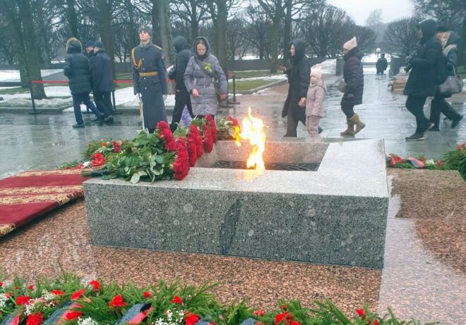 27 января, в День 81-й годовщины полного освобождения Ленинграда от фашистской блокады, делегация «ОФИЦЕРОВ РОССИИ» в составе члена федерального Президиума генерал-майора Хуршеда Нуманова, члена Совета мужества и отваги, Героя Советского Союза Владимира Гасояна и активиста Волгоградского регионального отделения майора Александра Пирожкова в рамках Всероссийской акции памяти «Блокадный хлеб» приняла участие в торжественно-траурной церемонии возложения венков и цветов к могилам погибших в блокаду жителей Ленинграда и Ленинградской области на Пискаревском мемориальном кладбище в Санкт-Петербурге.