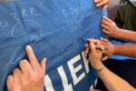 По просьбе детей Сергей Липовой и Александр Михайлов расписались на флаге «ОФИЦЕРОВ РОССИИ», который отряд берет в поисковые экспедиции.
