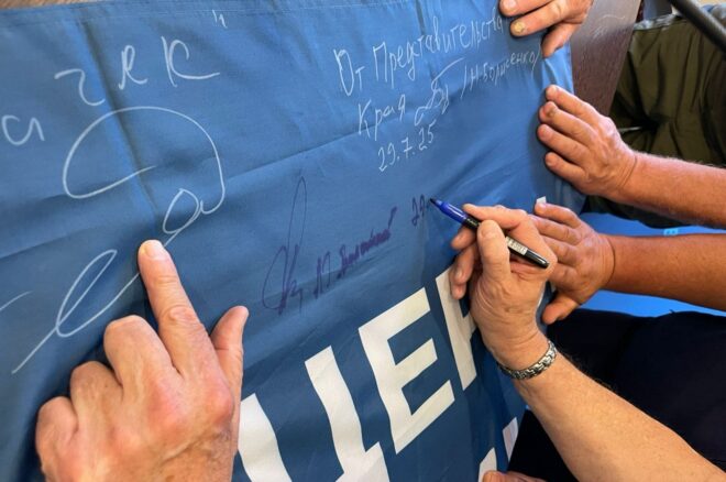 29 июля в Москве председатель Президиума «ОФИЦЕРОВ РОССИИ», Герой России генерал-майор Сергей Липовой и руководитель Центрального исполкома генерал-лейтенант Александр Михайлов встретились с ребятами из барнаульского поискового отряда «Искра».