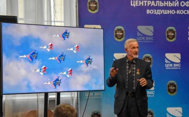 В Центральном доме офицеров Воздушно-космических сил России прошел урок мужества, приуроченный ко Дню Военно-воздушных сил. В этом году военной авиации исполнилось 113 лет.