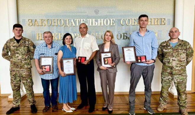 В Нижегородском Кремле, в здании областного Законодательного Собрания, пятерым волонтерам, оказывающим большую поддержку бойцам специальной военной операции, были вручены заслуженные награды.