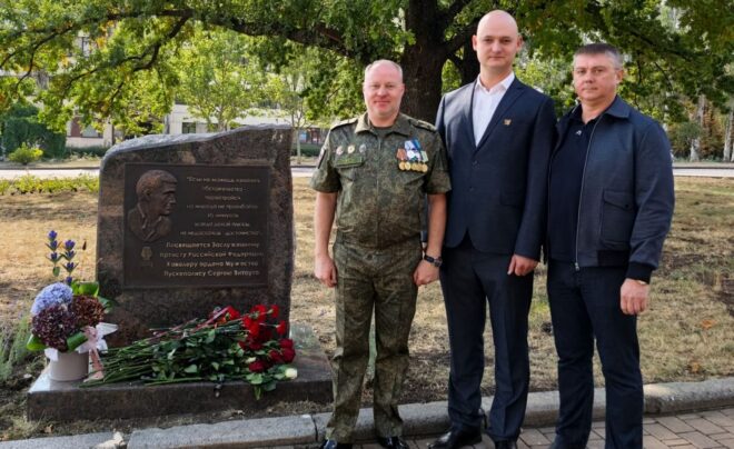 По инициативе «ОФИЦЕРОВ РОССИИ» в Донецке торжественно открыли памятник актеру и режиссеру Сергею Пускепалису