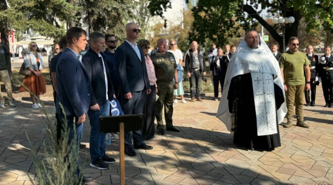 Председатель епархиального отдела погребения православных христиан Донецкой епархии протоиерей Владимир Бородулин совершил освящение барельефа.