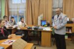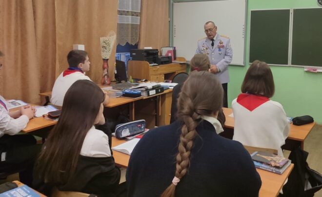 В ходе общения с учащимися подполковник Беляев рассказал им о службе в органах внутренних дел, порядке поступления и условиях учебы в учебных заведениях МВД, а также разъяснил отдельные положения законодательства РФ, предусматривающие уголовную ответственность за терроризм, диверсию и госизмену, предостерег от участия в этих преступлениях. Ребята задали гостю вопросы, на которые получили профессиональные ответы.
