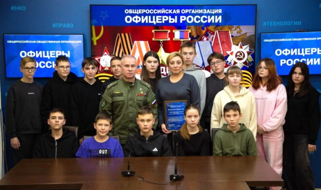 В торжественной церемонии по приглашению организации «ОФИЦЕРЫ РОССИИ» приняли участие учащиеся 7 «К» класса имени Героя России А.Н. Головашкина школы №152 г. Санкт-Петербурга, директор школы Руслан Клименко и классный руководитель именного класса Фатьма Назирли.