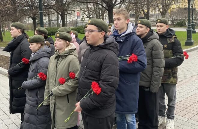 По сложившейся многолетней традиции в этот памятный день делегация «ОФИЦЕРОВ РОССИИ» возложила венок и цветы к Могиле Неизвестного солдата у Кремлевской стены в Москве, почтив память погибших воинов.
