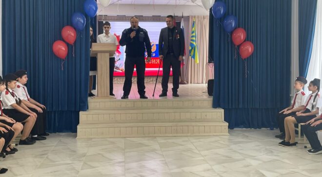 Всех присутствующих со знаменательным событием поздравили гости мероприятия – директор школы Екатерина Яхина, руководитель исполкома регионального отделения «ОФИЦЕРОВ РОССИИ» в Ставропольском крае полковник полиции в отставке Александр Гуров, руководитель Ассоциации ветеранов СВО в Георгиевском муниципальном округе, участник СВО капитан медицинской службы Фабьен Дюпон, председатель президиума местного отделения «ОФИЦЕРОВ РОССИИ» в г. Георгиевске, ветеран боевых действий подполковник запаса Камалдин Шихавов.