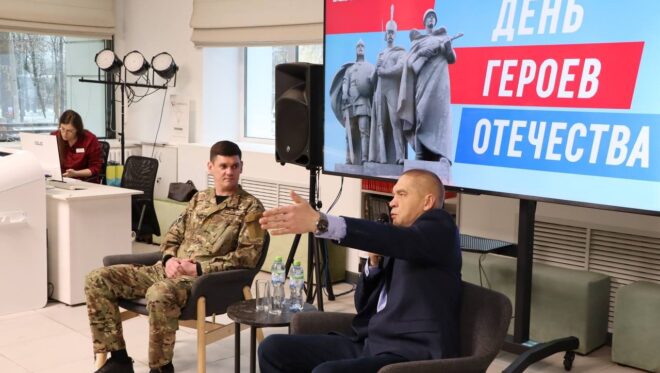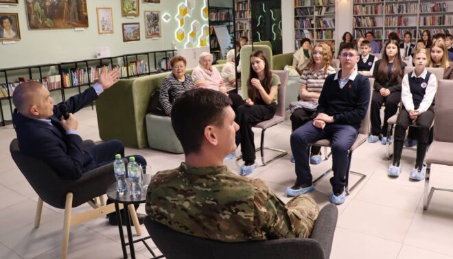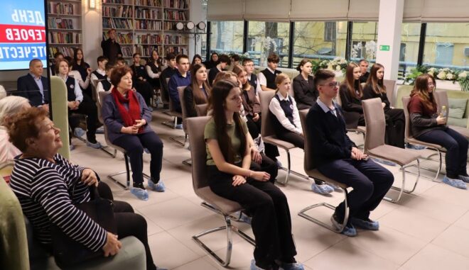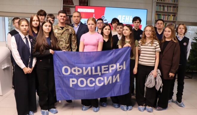 В модельной библиотеке им. Ф.М. Достоевского г. Нижнего Новгорода прошла встреча школьников с членами организации «ОФИЦЕРЫ РОССИИ», участниками событий, о которых сегодня важно знать и помнить. Участниками встречи стали восьмиклассники школы №168. Мероприятие было приурочено ко Дню Героев Отечества.