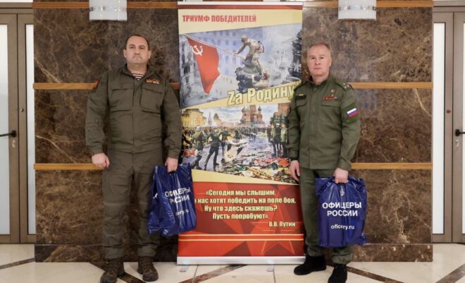 Кроме того, от организации «ОФИЦЕРЫ РОССИИ» раненым были переданы подарки – 20 спортивных костюмов.