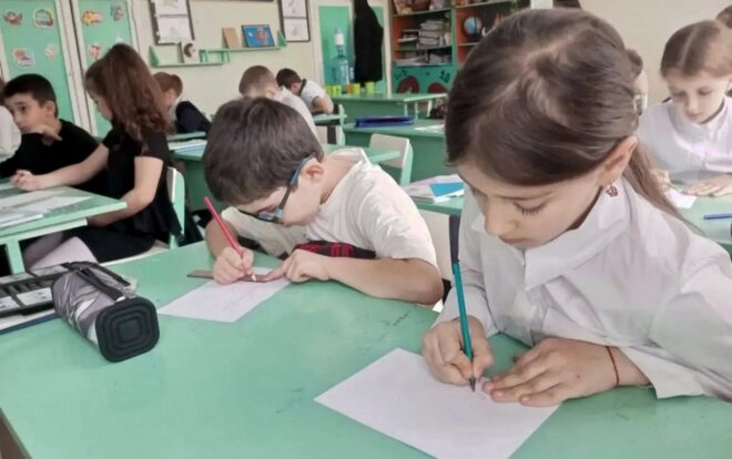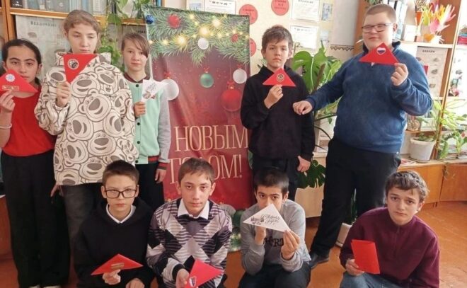 Кроме того, Александр Касмылин и Анатолий Булатенко посетили школу №4 в селе Нижняя Александровка, где организовали сбор написанных школьниками писем, адресованных к участникам специальной военной операции. Более 30 учеников разных классов передали теплые письма нашим бойцам на передовую.