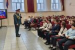 Александр Иванович рассказал ученикам пятых классов – будущим членам Жуковского движения – о Герое Советского Союза маршале Победы Г.К. Жукове, а также о военнослужащих СВО, о тех, кто защищал интересы нашей Родины с оружием в руках, и с гордостью представил Булата Жакслыковича. Старший прапорщик Байтурганов служил в штурмовой бригаде с 2022 года, вернулся домой и сегодня проводит патриотическую работу с подрастающим поколением, чтобы ребята знали правду о героическом пути наших военнослужащих СВО.