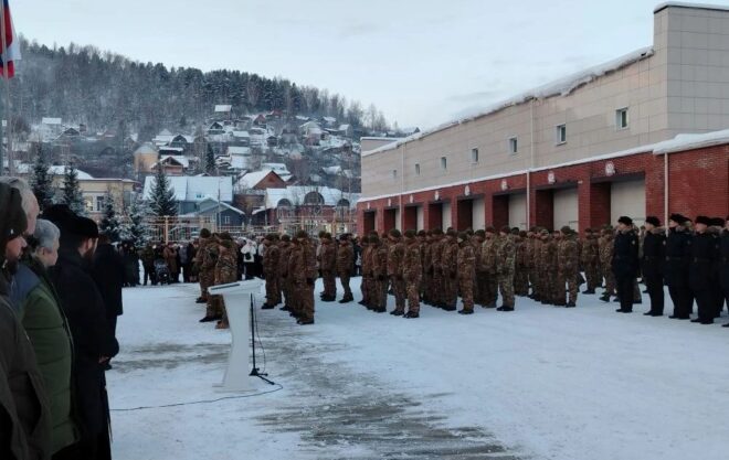 «ОФИЦЕРЫ РОССИИ» Алтайского края приняли участие в торжественных проводах на фронт воинов-пограничников