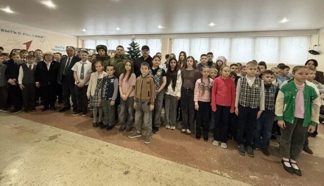 Руководитель исполкома местного отделения «ОФИЦЕРОВ РОССИИ» в г. Россоши Воронежской области Сергей Львов провел урок мужества для учеников школы №10, на котором рассказал о героизме и стойкости наших воинов на фронте, своих гуманитарных миссиях в зону СВО, а также поздравил ребят и педагогов с Новым годом. Школьники в ответ передали для наших бойцов подарки и письма с рисунками.