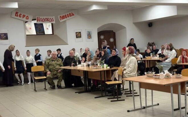 В Сургуте по приглашению председателя президиума регионального отделения «ОФИЦЕРОВ РОССИИ» ХМАО – Югры подполковника в отставке Александра Сусидко многодетные семьи и семьи погибших участников СВО посетили храм в честь святых мучениц Веры, Надежды, Любови и матери их Софии. В рамках благотворительной акции «Подари Рождество» для них было организовано чаепитие и рождественский концерт с участием воспитанников воскресной школы.