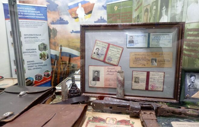 Выставку представили МОО «Комитет по сохранению памяти героев подвига самопожертвования» и поисковое объединение «Тризна» в рамках проекта «Герои Отечества».