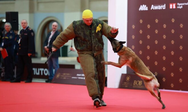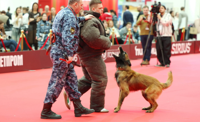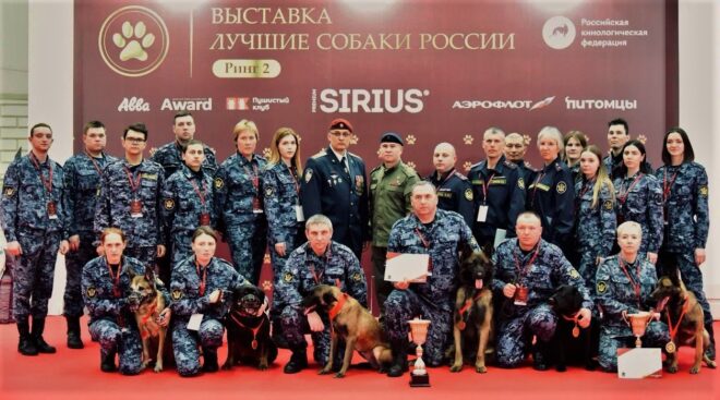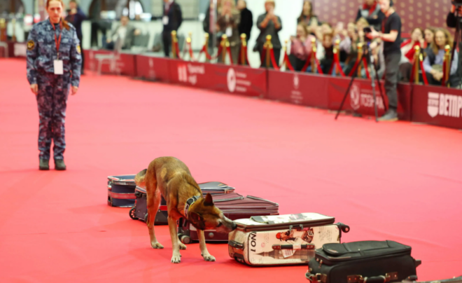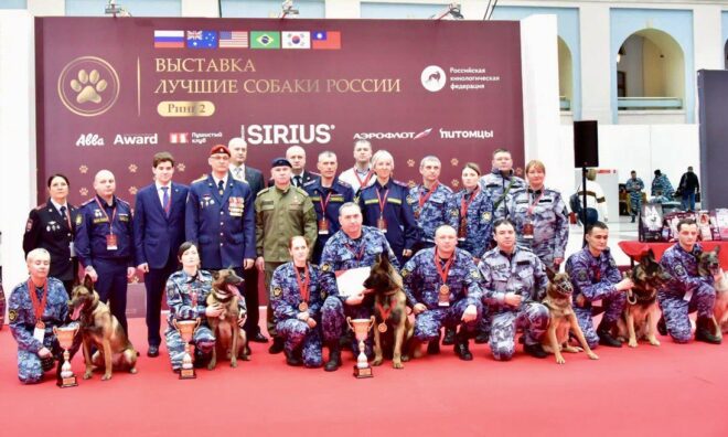 На площадке Гостиного двора в рамках выставки «Лучшие собаки России» Российской кинологической федерации прошли межведомственные соревнования служебных кинологических расчетов МВД России, ФСИН России, ФТС России и Росгвардии.