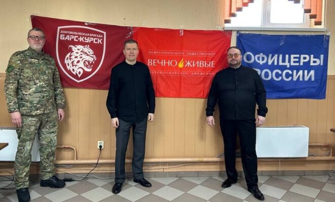 Общероссийская организация «ОФИЦЕРЫ РОССИИ», Движение «Вечно живые» и Северо-Западный патриотический центр «Авангард» при поддержке Министерства культуры Курской области провели для добровольцев учебного батальона бригады «Барс-Курск» концерт с участием артистов Фонда культурных начинаний «Высокая нота» из Санкт-Петербурга – певца и дирижера Олега Мотлахова и оперного певца Евгения Наговицына.