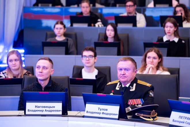 В рамках Всероссийской акции «Нашим героям» состоялась встреча студентов и преподавателей университета с председателем Президиума «ОФИЦЕРОВ РОССИИ», Героем России генерал-майором Сергеем Липовым, Героем Социалистического труда, председателем Совета отечественных производителей в сфере обороны и безопасности «ОФИЦЕРОВ РОССИИ» Геннадием Баштанюком, участником специальной военной операции, ветераном 45-й отдельной орденов Кутузова и Александра Невского бригады специального назначения ВДВ Артемом Прусенко, а также ветеранами боевых действий из числа сотрудников университета.