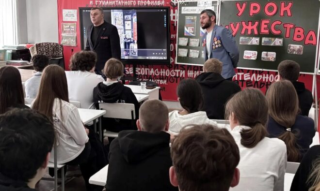 Так, 9 февраля заместитель руководителя исполкома регионального отделения «ОФИЦЕРОВ РОССИИ» в Ставропольском крае, ветеран боевых действий Александр Касмылин и активист организации, ветеран СВО Назир Амиров провели в средней школе №19 села Побегайловка Минераловодского округа урок мужества, посвященный Дню памяти о россиянах, исполнявших служебный год за пределами Отечества.