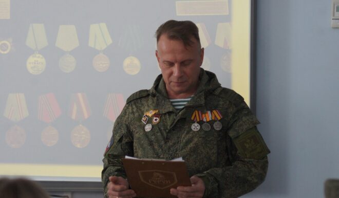 Перед собравшимися выступил член Вологодского регионального отделения «ОФИЦЕРОВ РОССИИ», ветеран СВО и финалист проекта «Герои Русского Севера» Владимир Беляев, который поделился своей историей и прочитал для гостей авторский рассказ «Медали», а Людмила Зайцева прочла его произведение «Девчонки», посвященное детям, чьи судьбы затронула война.