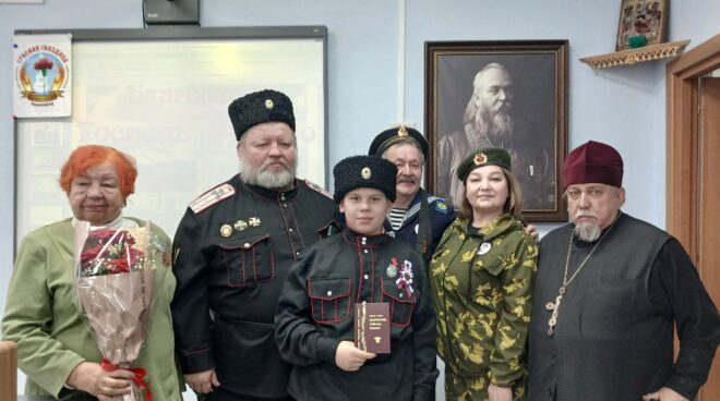 Заместитель руководителя Ассоциации ветеранов военной разведки подполковник Сергей Созин рассказал о важности служения Отечеству и чести. Атаман «Союза казаков России» Евгений Сухарев и заместитель атамана по работе с молодежью «Союза казаков России», участник СВО Александр Поддячный говорили о неразрывной связи казачества и защиты православной веры, дали наказ юным казачатам жить по законам, служить Родине и народу.