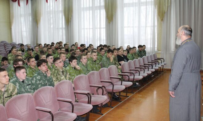 Руководитель местного отделения «ОФИЦЕРОВ РОССИИ» в Тальменском районе Константин Гавриленко организовал встречу курсантов Учебно-методического центра «Авангард» с помощником благочинного Тальменского округа по взаимодействию с правоохранительными органами и армией иереем Игорем Кисляковым.