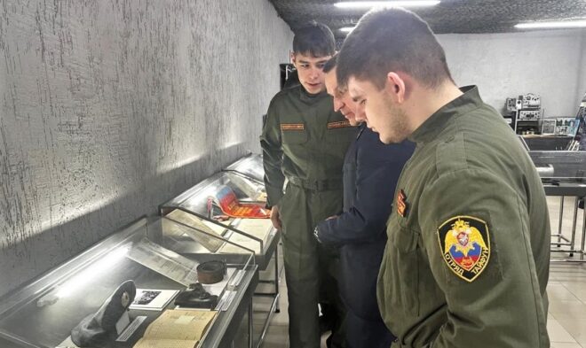 В этот же день в музейной комнате состоялся и первый урок мужества для воспитанников «Гвардейской смены». Ребята первыми смогли ознакомиться с экспозицией, прикоснувшись к славной истории ведомства. Уроки мужества для школьников и студентов будут проводиться в музейной комнате на постоянной основе.