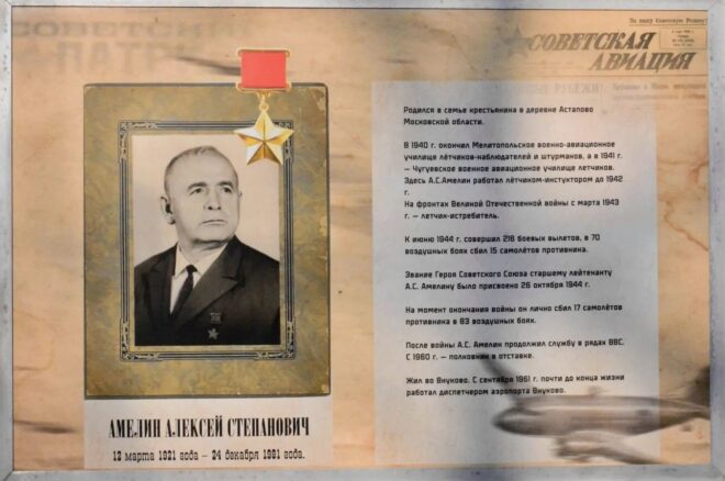 Участники вспомнили боевой путь Александра Степановича Амелина. Он родился 12 марта 1921 года в Московской области. В 1940 году окончил Мелитопольское военно-авиационное училище летчиков-наблюдателей и штурманов, а в 1941 году – Чугуевское военное авиационное училище летчиков. До 1942 года работал летчиком-инструктором. С марта 1943 года сражался на фронтах Великой Отечественной войны в качестве летчика-истребителя.