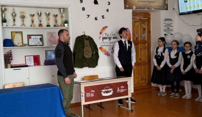 Руководитель исполкома регионального отделения «ОФИЦЕРОВ РОССИИ» в Республике Ингушетия Руслан Галаев посетил среднюю школу №12 имени А.М. Котиева сельского поселения Инарки, где принял участие в церемонии открытия «Парты Героя».