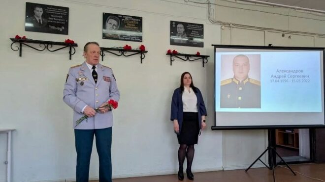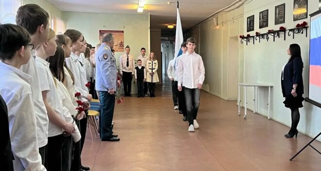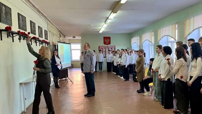 В Череповце председатель президиума Вологодского регионального отделения «ОФИЦЕРОВ РОССИИ» Геннадий Малышев принял участие в торжественной линейке, посвященной памяти выпускника кадетского класса средней школы №5 имени Е.А. Поромонова гвардии лейтенанта Андрея Александрова.