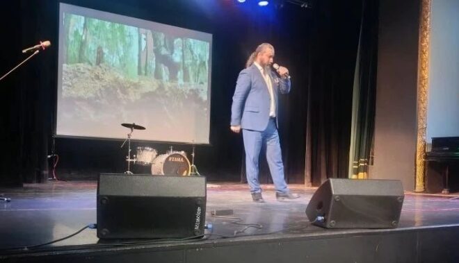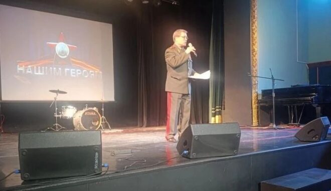 Прозвучали песни и стихи авторов-исполнителей, неоднократно выезжающих с концертами в зону СВО для поддержки боевого духа защитников Родины.