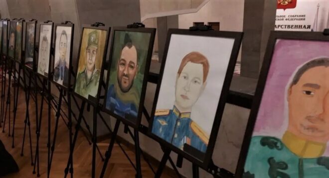 25 марта в здании Государственной Думы состоялось открытие выставки детских рисунков «Мой папа – герой!». В экспозиции были представлены портреты отцов-героев СВО, написанные их детьми.