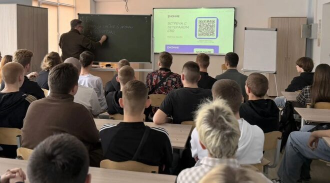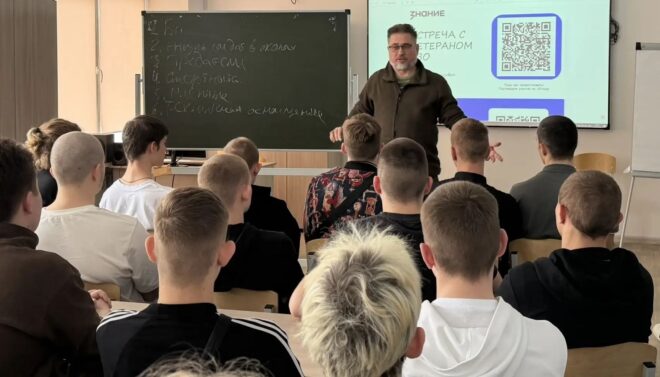В Нововоронежском политехническом институте – филиале национального исследовательского ядерного университета МИФИ состоялась встреча студентов с членом президиума регионального отделения «ОФИЦЕРОВ РОССИИ» в Воронежской области, лектором общества «Знание», ветераном СВО Петром Раковым.