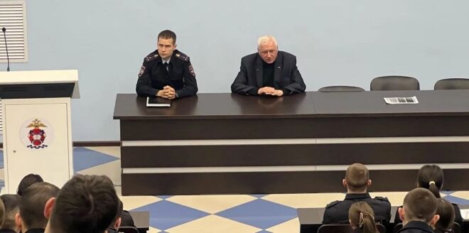 Один из уроков мужества провел руководитель исполкома регионального отделения «ОФИЦЕРОВ РОССИИ», заслуженный сотрудник органов внутренних дел РФ, ветеран боевых действий полковник милиции в отставке Владимир Сериков. Он прошел в Волгоградской академии МВД России и был посвящен 60-й годовщине создания учебного заведения.