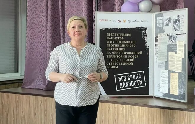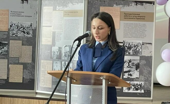 Участники уроков мужества смогли ознакомиться с передвижной историко-документальной выставкой «Без срока давности», которая рассказывает о геноциде советского народа со стороны нацистов, их пособников в период войны, и раскрывает различные аспекты политики геноцида: карательные операции; массовое уничтожение мирных жителей: создание условий, несовместимых с жизнью; преступления, совершенные против детей, женщин и стариков на оккупированных территориях.