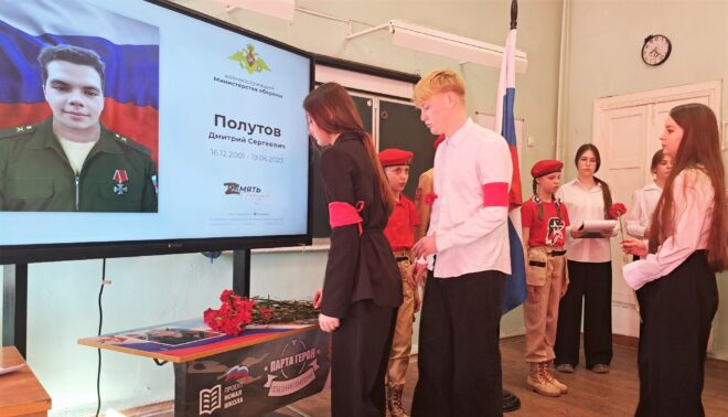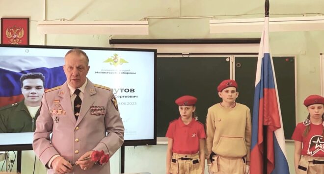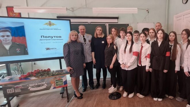 Председатель президиума Вологодского регионального отделения «ОФИЦЕРОВ РОССИИ» принял участие в мероприятии, которое прошло в средней школе №6 г. Череповца. Акция была посвящена памяти выпускника школы Дмитрия Сергеевича Полутова, погибшего в зоне проведения СВО 19 июня 1923 года и посмертно награжденного орденом Мужества.