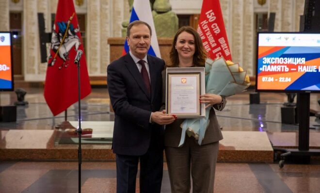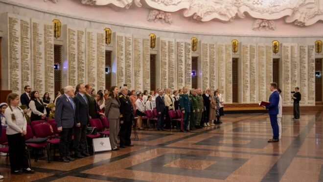 В ходе мероприятия генеральный директор Музея Победы Александр Школьник вручил благодарность от президента России Владимира Путина почетному работнику сферы образования РФ Елене Слесаренко, которая стояла у истоков этой программы.