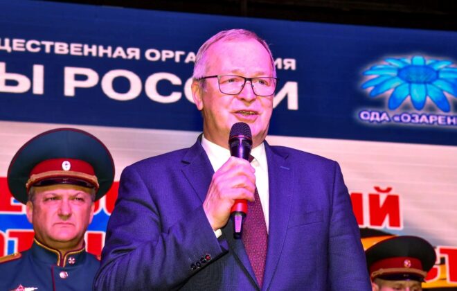 К участникам и гостям мероприятия со сцены обратился руководитель исполкома Алтайского регионального отделения «ОФИЦЕРОВ РОССИИ» полковник Лев Могильников, который также вручил медали «За помощь фронту», медали «За патриотическое воспитание подрастающего поколения», благодарности активным жителям региона и волонтерам.