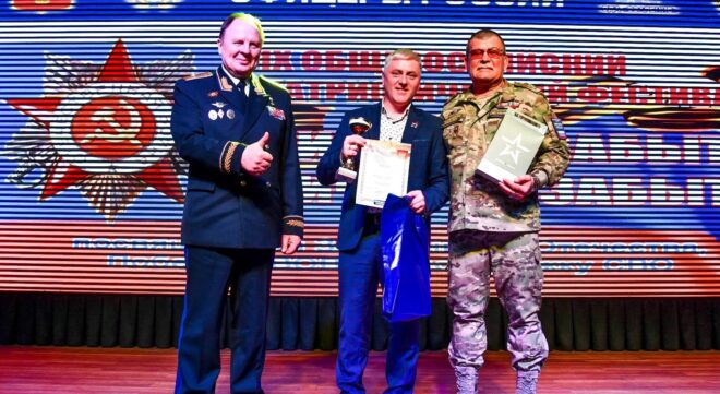 Сегодня на полях сражений с украинскими неонацистами сражаются и члены «ОФИЦЕРОВ РОССИИ», некоторые из них заключают новые контракты, чтобы завершить начатое дело. Один из них Алексей Грибанов обратился к участникам фестиваля и своим землякам прямо с передовой. Также большой привет с фронта участникам фестиваля и коллегам передал постоянный член жюри фестиваля, руководитель вокальной группы «Форпост» Пограничного управления по Республике Алтай Валерий Редколес.